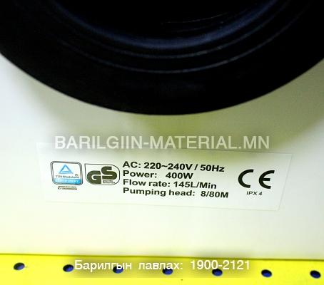 Бохир усыг зайлуулах насос / 400W /