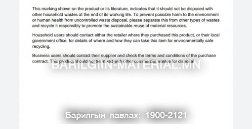 | Оролтын хүчдэл | 230V ~ 50Гц байна |