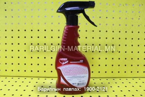 Является концентрированным быстродействующим многофункциональным очистителем. Подошва, дверные панели, центральная консоль, сиденья, потолок. Идеален для очистки и защиты от грязи велюровых и других тканевых обивок и ковровых покрытий салона нового поколения. Очищает от пятен грязи, масла, копоти, чернил, губной помады, сладостей.
